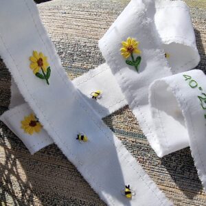 Como NOVEDAD que viene pisando fuerte este año en todos mis productos la posibilidad de bordar la letra de una persona querida en lugar de los tipos de letra que te ofrezco ( solo a mano)